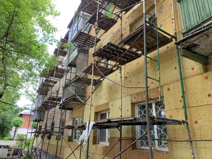 Продолжаются работы по ремонту фасада дома 7/27 по улице Рощинской. В настоящее время на фасад монтируется утеплитель, работы по утеплению выполнены на 40%, после полного монтажа утеплителя , начнутся штукатурные и покрасочные работы.