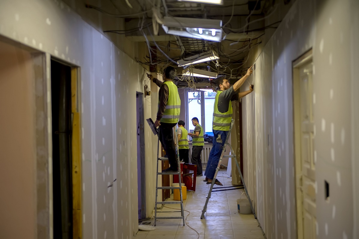 Без остановки работы станции скорой помощи в её помещениях подрядной организацией ООО «Спецстрой» ремонт ведётся поэтажно.