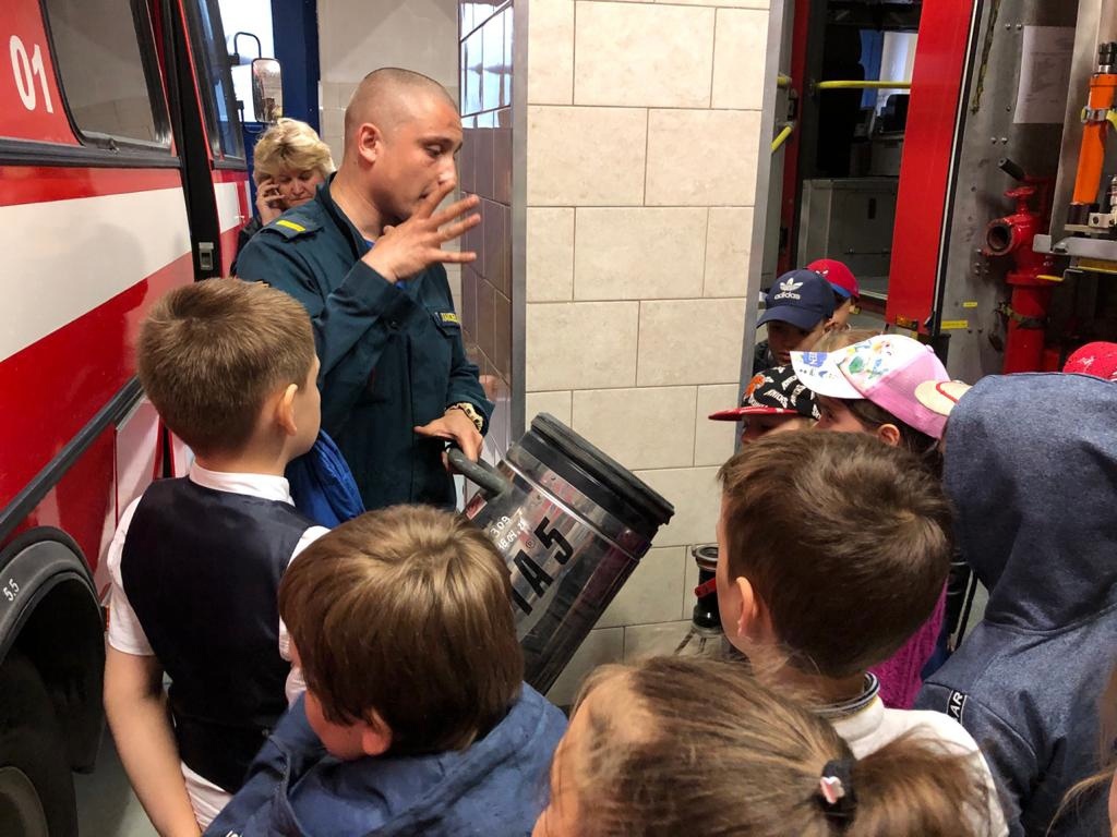 Одним из самых запоминающихся этапов экскурсии стало знакомство с пожарными автомобилями. Александр Лаковец продемонстрировал различное оборудование, которым пользуются во время пожара и спасения пострадавших, попавших в чрезвычайную ситуацию, показал ребятам предметы боевой одежды. Так же рассказал школьникам про правила пожарной безопасности в быту объяснил, как нужно действовать в случае обнаружения возгорания.