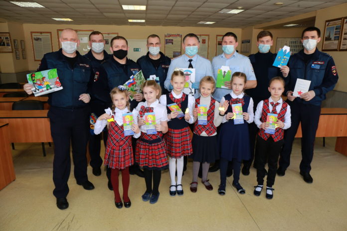 В преддверии Дня защитника Отечества ученики гимназии №7 Городского округа Подольск поздравили автоинспекторов, прочитав для них тематические стихи и вручив им поздравительные открытки, сделанные своими руками. Инспекторы не остались равнодушными к трогательным пожеланиям детей, поблагодарили их и подарили юным пешеходам тематические памятки и световозвращающие брелоки.