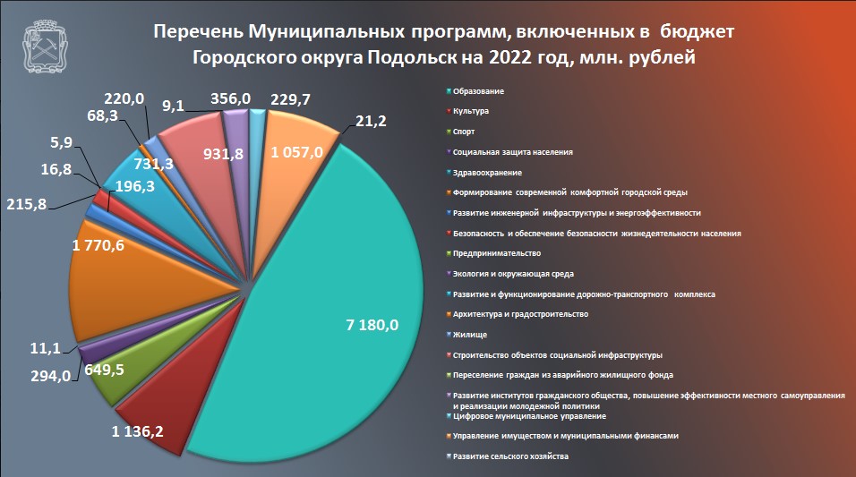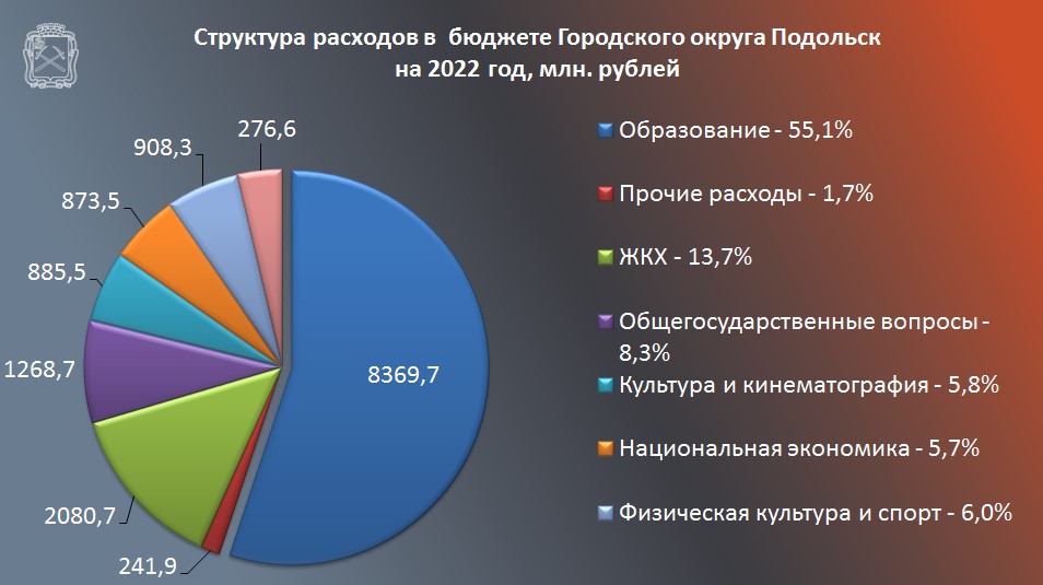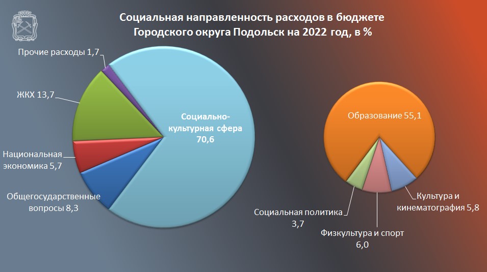 В бюджете Городского округа Подольск на 2022 год и на плановый период 2023 и 2024 годов сохраняется приоритетность социальной сферы. Расходы на социально-культурную сферу (образование, социальную политику, культуру, физическую культуру и спорт) составят в 2022 году 10 млрд. 714,3 млн. рублей или 70,6% в общем объеме расходов бюджета.