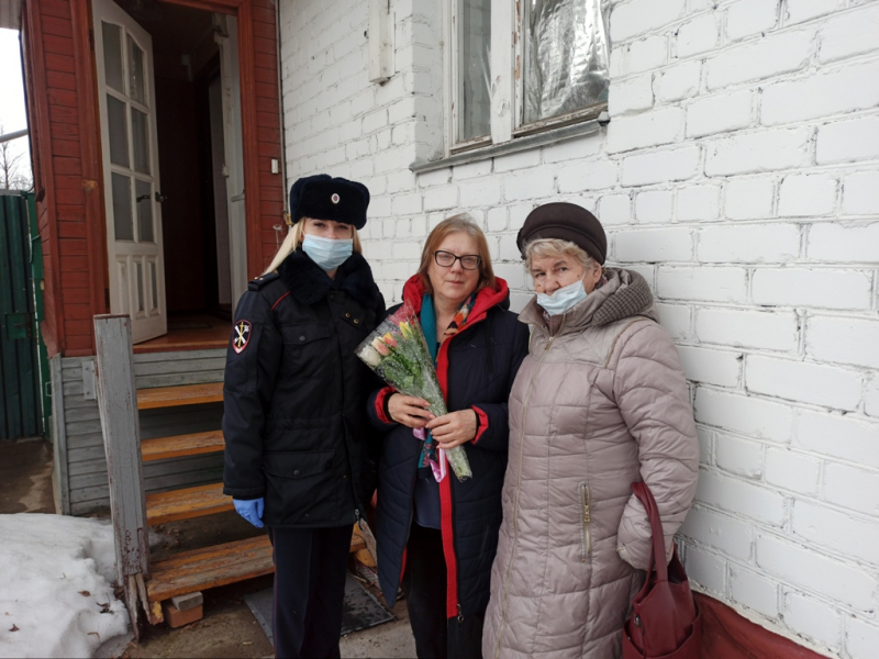 В рамках традиционной праздничной акции «8 Марта — в каждый дом» полицейские различных подразделений УМВД России по Г.о. Подольск совместно с председателем Совета ветеранов при УМВД Маргаритой Виноградовой поздравили вдов сотрудников органов внутренних дел, погибших при исполнении служебного долга.