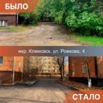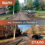Строительство тротуара, парковочных карманов и новых проездов между домами на улице Рожкова в Климовске завершено