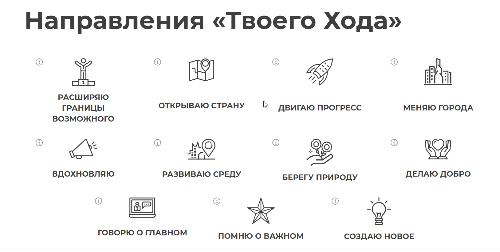 В конкурсе ты сам выбираешь сферу развития — от культуры и искусства до экологии. Всего 11 направлений — точно найдешь что-то по душе. Ты научишься создавать проекты и управлять ими, потренируешься выполнять сложные (но интересные!) задания в команде и самостоятельно. Так ты поймешь, насколько тебя увлекает новая специальность. Ошибся — не страшно: зато получишь ценный опыт и разберешься в себе. И универ менять не придется!