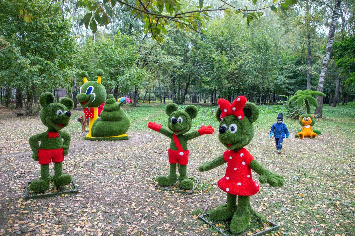 Весёлые персонажи мультфильмов и просто милые зверюшки (львенок, улитки, гусеница, динозаврик) и другие фигурки недавно «поселились» в филиале муниципального бюджетного учреждения «Парк культуры и отдыха имени Виктора Талалихина» — в парке «Берёзки».