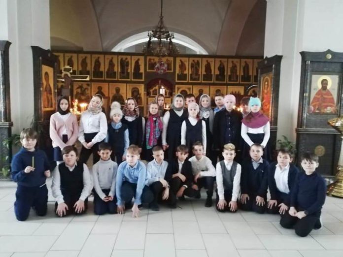 28 января 30 учащихся 4-Б класса классического корпуса Гимназии имени Подольских курсантов вместе с классным руководителем Бращиной Еленой Игоревной побывали на экскурсии в Храме священномученика Сергия, расположенном поблизости от школы. Поход в храм стал итогом большой подготовительной работы. Накануне в этом классе в рамках изучения предмета «Основы религиозной культуры и светской этики» были проведены занятия, на которых дети познакомились с устройством православного храма, с заповедями Божьими, узнали много ранее неизвестного о названии храма, о священномученике Сергии, о Бутовском полигоне, о страшном периоде репрессий в нашей стране, о Соловецких островах и о Поклонных крестах как символе покаяния. Во время встреч со священниками в школе ребята расширили свои знания. И вот, наконец, долгожданная экскурсия, когда можно воочию увидеть своими глазами, как устроен храм, познакомиться с алтарем, с алтарной преградой — иконостасом, с аналоем, кануном, увидеть своими глазами храмовые иконы, узнать о мощевиках, правильно подать записки, поставить свечи к иконам. После небольшой экскурсии по храму детям было дано задание: найти икону Подольских святых. С заданием справились без труда! Было отрадно, что ребята сразу узнали и другие иконы, с которыми познакомились ранее: икона священномученика Сергия, Сергия Радонежского – покровителя учения. В конце экскурсии – свободное время на записки и свечи.
