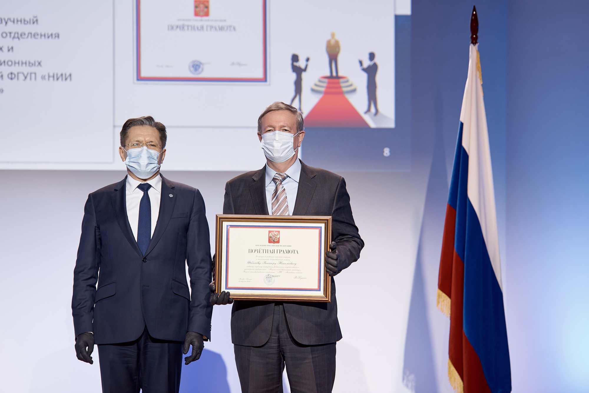 Почётную грамоту Президента Российской Федерации учёным вручил генеральный директор Госкорпорации «Росатом» Алексей Лихачев. Награждение состоялось 9 февраля в Госкорпорации «Росатом» в рамках торжественного заседания «Наука в комплексной программе РТТН», посвящённого Дню российской науки.