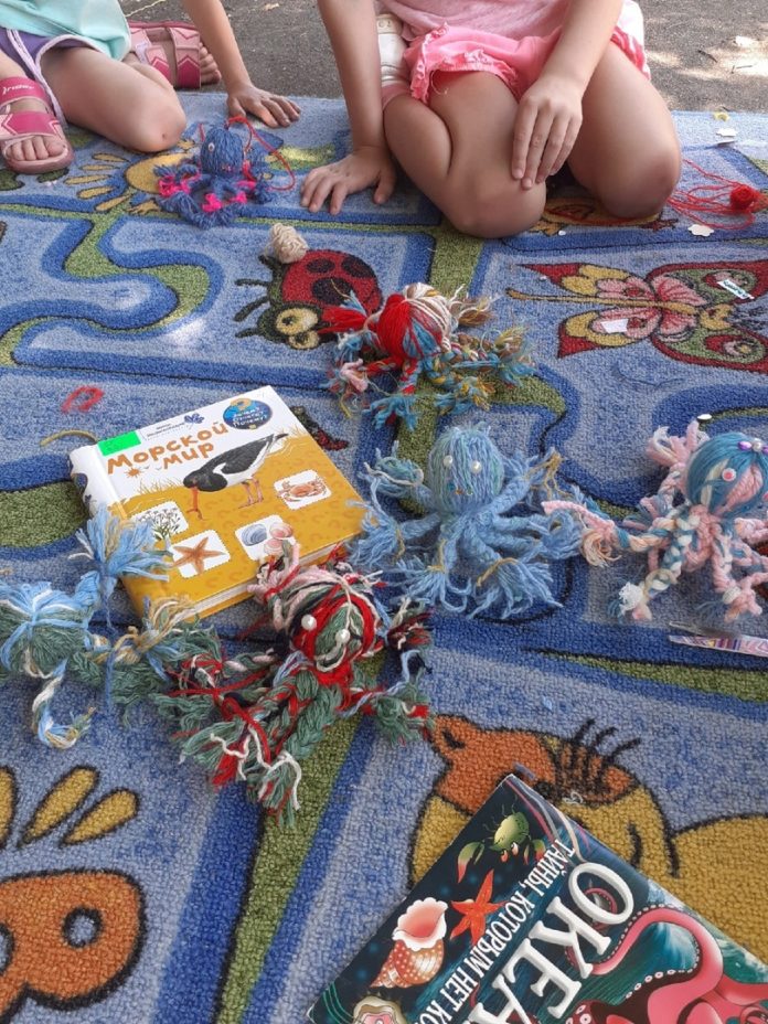 В завершение мероприятия ребята посетили творческую мастерскую , где из разных ниток мастерили «Осьминожек».