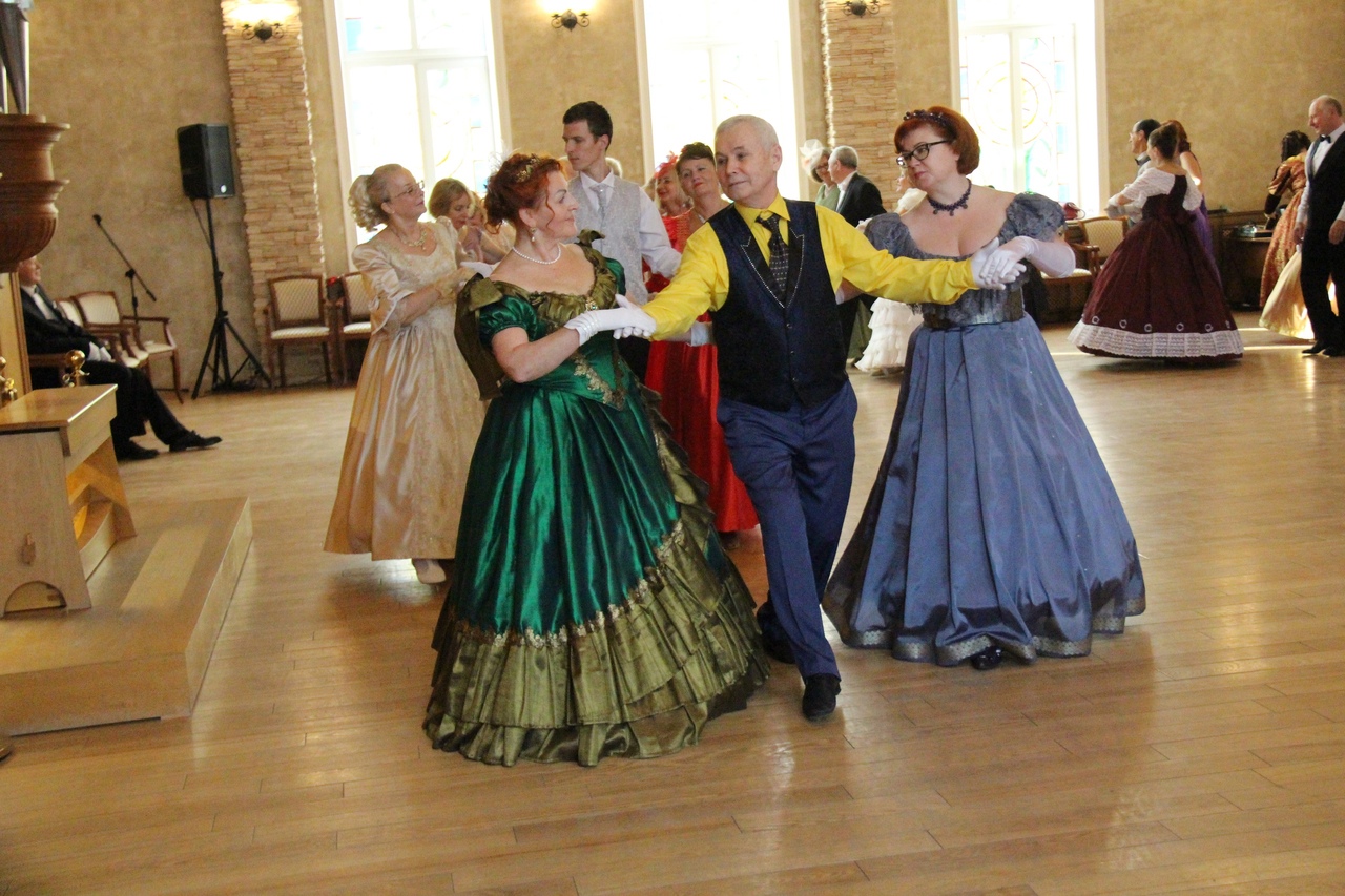 Участники бала исполнили танцы разных эпох: полонез, мазурка, вальс, полька, па-де-грасс, кадриль, падепатинер, а также играли в игры «Котильон» и «Ручеек».