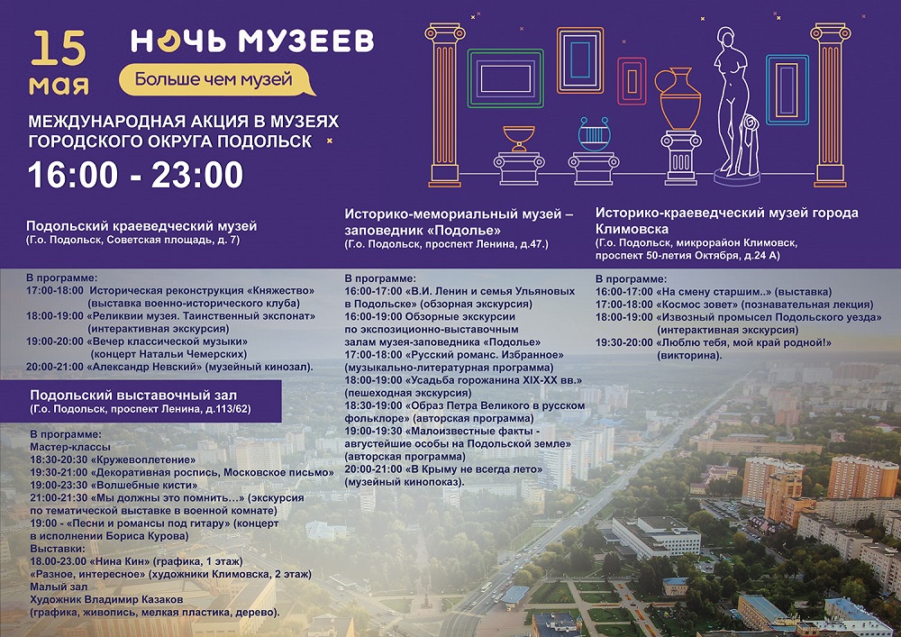 Приглашаем жителей и гостей Городского округа Подольск на акцию «Ночь музеев». Ярких вам впечатлений, интересных открытий и новых знаний об истории родного края!