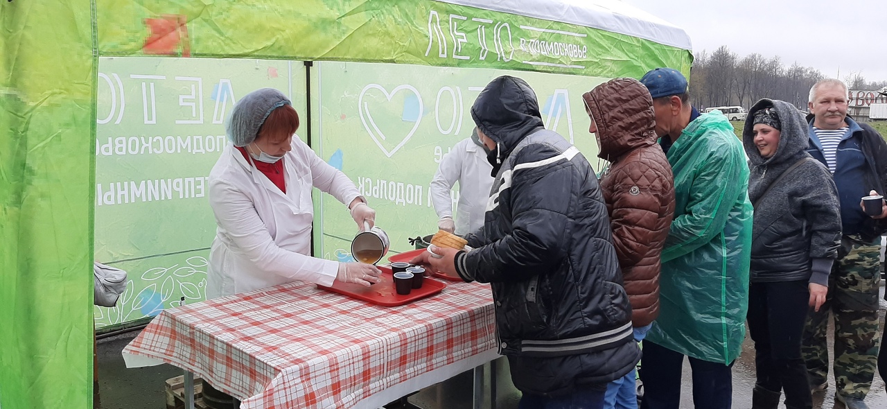 Для участников субботника была организованна полевая кухня и горячий чай, а хорошее настроение создавала музыка.