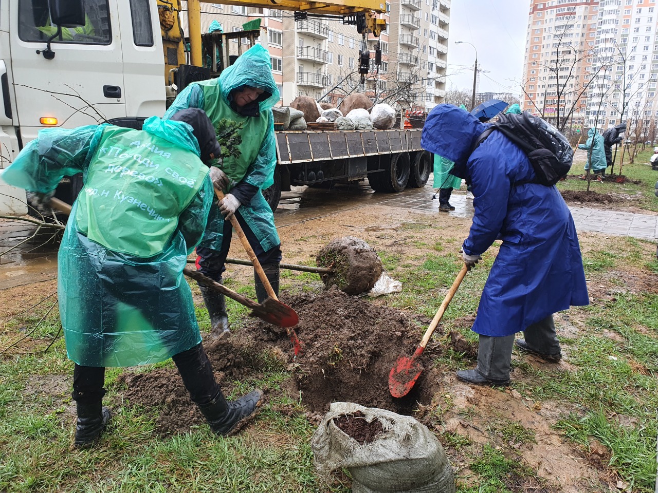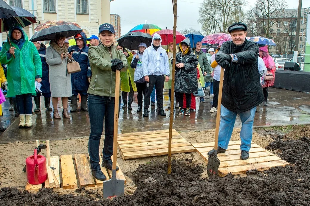 Подольчане, несмотря на не стихающий дождь, охотно принимали участие в посадке деревьев. Член Общественной палаты округа Наталья Архипова отметила, что не могла остаться в стороне:
