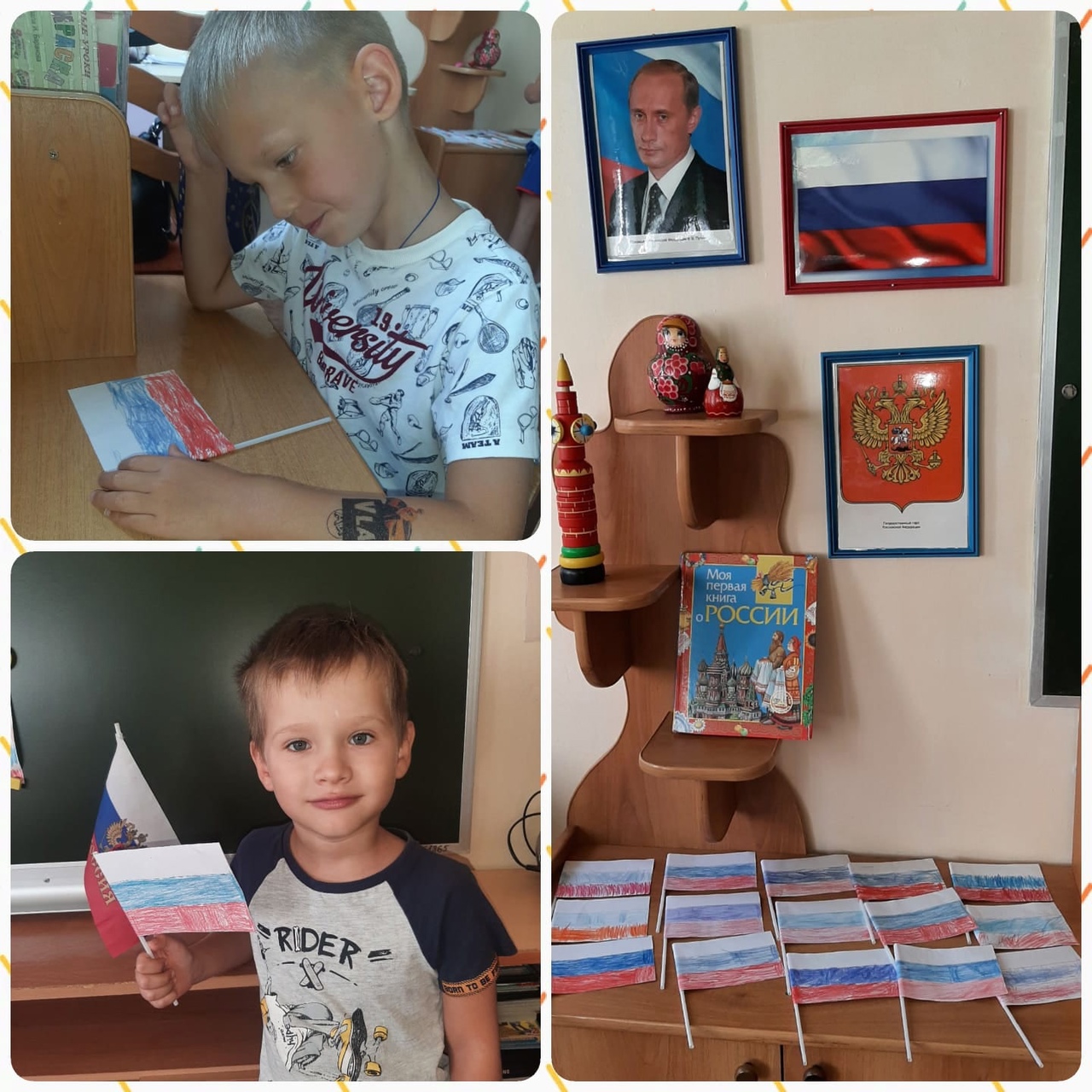 В рамках тематической недели «Мы патриоты нашей страны» были проведены мероприятия, посвящённые Дню Государственного флага Российской Федерации. Дети и воспитатели слушали и пели государственный гимн, рассматривали символы России, иллюстрации с изображением городов России, конструировали достопримечательности Москвы, раскрашивали национальный триколор, разучили стихотворение о цветах флага. Цель проведения данных мероприятий: расширение знаний о государственных символах, истории нашего государства, воспитание чувств любви к Родине, гордости за свою страну, ответственности за будущее нашего народа.