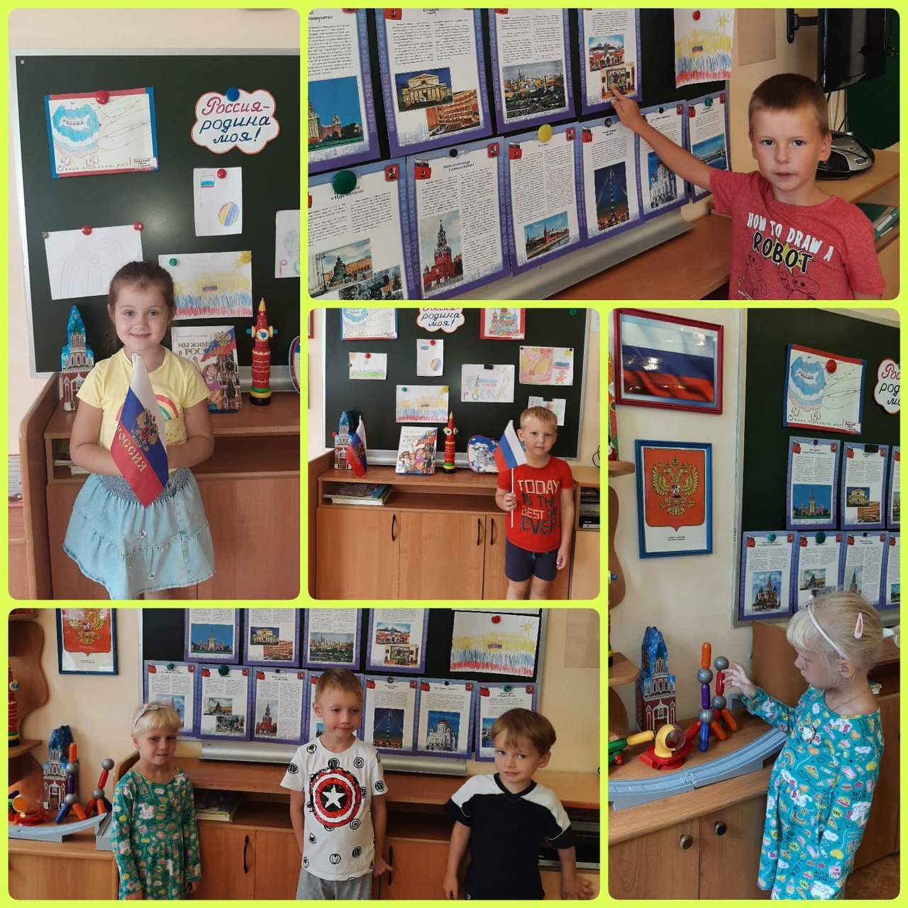 В рамках тематической недели «Мы патриоты нашей страны» были проведены мероприятия, посвящённые Дню Государственного флага Российской Федерации. Дети и воспитатели слушали и пели государственный гимн, рассматривали символы России, иллюстрации с изображением городов России, конструировали достопримечательности Москвы, раскрашивали национальный триколор, разучили стихотворение о цветах флага. Цель проведения данных мероприятий: расширение знаний о государственных символах, истории нашего государства, воспитание чувств любви к Родине, гордости за свою страну, ответственности за будущее нашего народа.