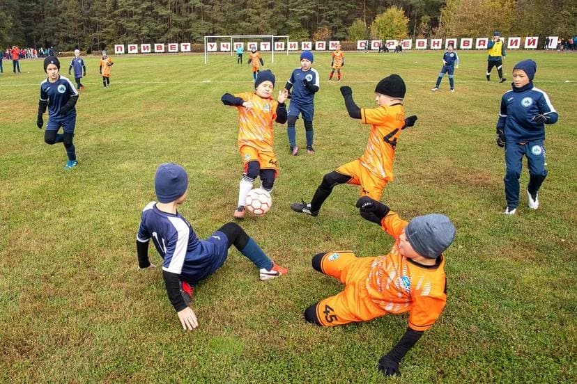 Параллельно с бегунами на стадионе сыграли товарищеский матч юные футболисты, а на соседних площадках готовились к играм баскетболисты и волейболисты.