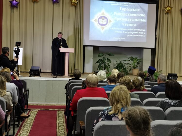 Во вторник,  30 ноября в рамках XIX Московских областных Рождественских образовательных чтений «350-летию со дня рождения Петра I: секулярный мир и религиозность» в г. Подольске в Лицее № 26 состоялась совместная конференция Подольского благочиния с педагогами и школьниками г. Подольска. В мероприятии приняли участие и.о. председателя Комитета по образованию Администрации г.о. Подольск Киселева Г.М и благочинный Подольского округа протоиерей Олег Сердцев. В актовом зале Лицея были представлены творческие работы детей, посвященных Рождеству Христову и теме правления Петра Великого. В начале работы конференции с вступительным словом к присутствующим обратилась Киселева Галина Михйловна.
