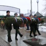 Корзины цветов, алые гвоздики, венки и гирлянды славы возложили к Братской могиле на старом кладбище Гривно, к памятникам-монументам: «Неизвестный солдат» на Вокзальной площади, «Скорбящая мать» на Октябрьской площади, к памятнику «Два курсанта» на территории гимназии имени Подольских курсантов.