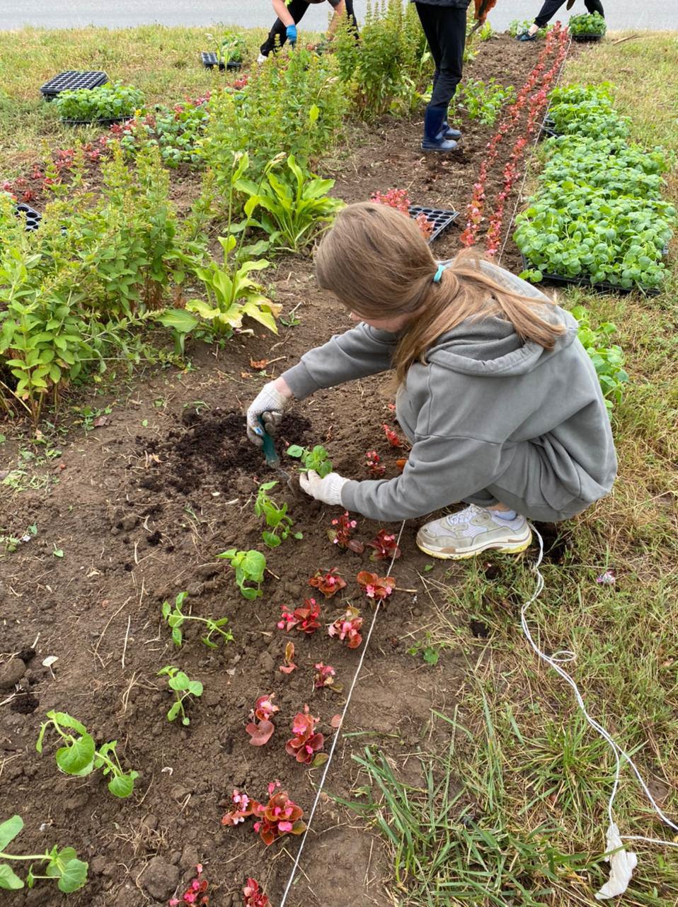 Подольским комбинатом благоустройства обновлена клумба в центре микрорайона Кузнечики, на газоне разворотного круга общественного транспорта. Ранние цветы заменены на летние бегонии и тагетисы бархатцы.