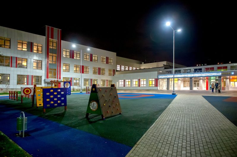 «На школьной территории со стороны Бородинской улицы идут монтаж подземной ёмкости для сбора ливнестоков, малых форм на игровых спортивных площадках, где далее при соответствующих погодных условиях нанесут резиновое покрытие.