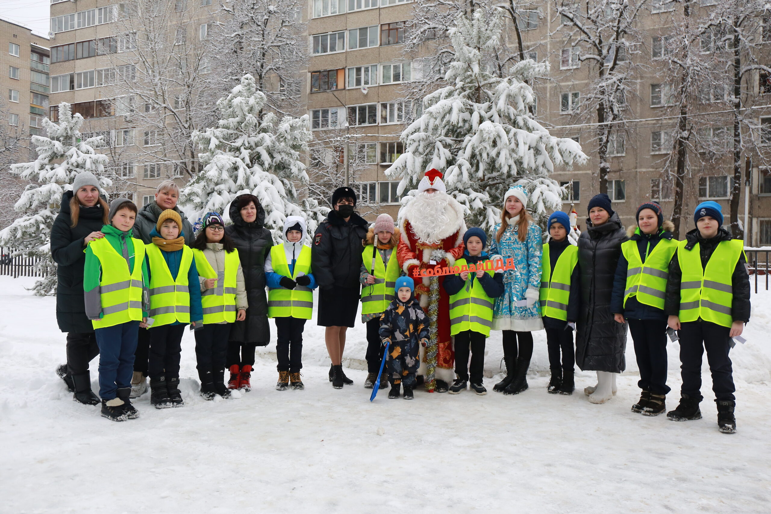 В подмосковном Подольске сотрудники Госавтоинспекции и активисты отряда ЮИД Лицея №26 провели акцию по профилактике детского дорожно-транспортного травматизма «Безопасный Новый год». Гостями мероприятия стали сказочные персонажи главного зимнего праздника – Дед Мороз и Снегурочка.