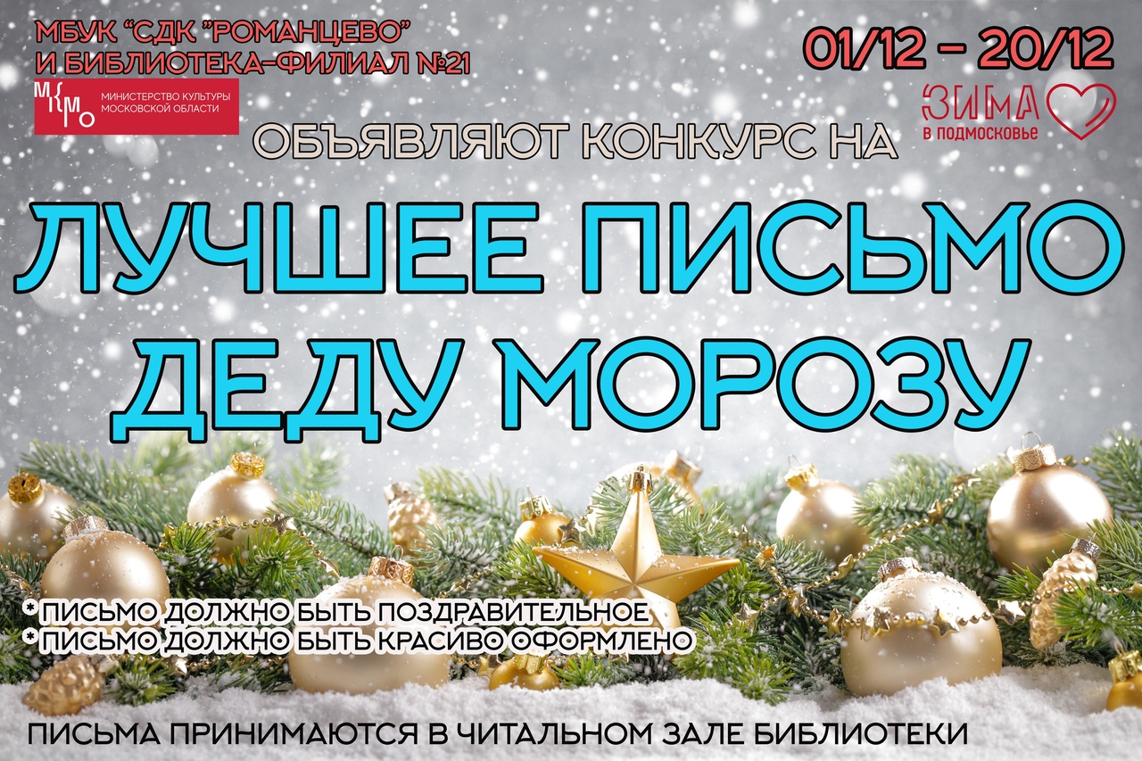 МБУК «СДК «Романцево» и библиотека-филиал №21 объявляют традиционный предновогодний конкурс на лучшее письмо Деду Морозу.