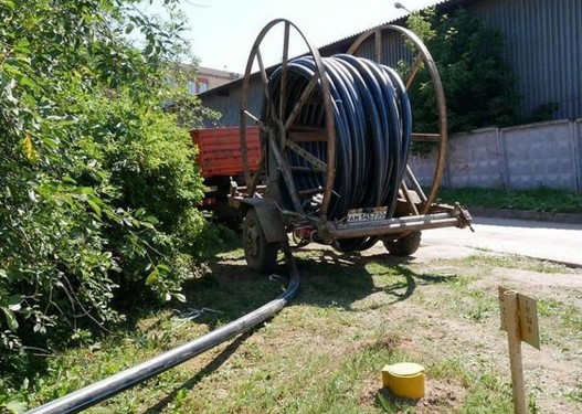 Работа близится к завершению. При прокладке используют метод горизонтально-направленного бурения – распространённый бестраншейный способ прокладки подземных коммуникаций.