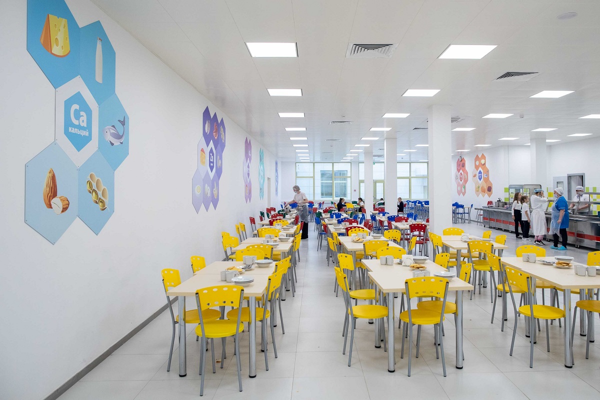 Для полноценных занятий спортом учащимся необходимо правильно и регулярно питаться, для этого в школе располагается большое и уютное помещение столовой на 400 мест. Столовая с учетом двухразового питания укомплектована необходимой посудой, а чистоте помещения уделяется повышенное внимание.