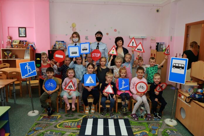 В детском саду «Обыкновенное чудо» дорожные полицейские организовали викторину по правилам безопасного нахождения в дорожно-транспортной среде «Дорожная азбука», в которой приняли участие дети из старшей и подготовительной группы. Воспитанники с большим интересом слушали инспектора и отвечали на заданные им вопросы. В игровой форме малыши изучили значения основных дорожных знаков, и правила перехода проезжей части дороги.