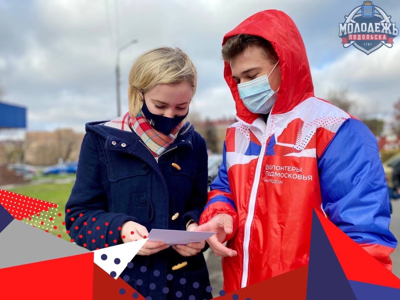 Волонтеры раздают жителям информационные буклеты на улицах Городского округа Подольск, а также на пунктах МФЦ.