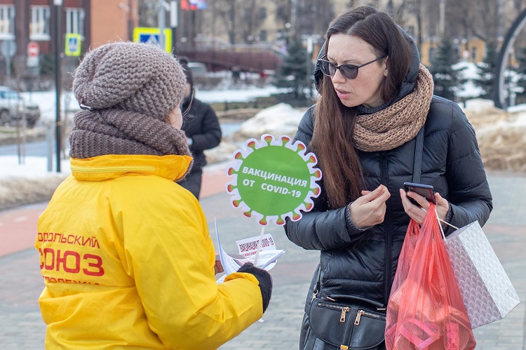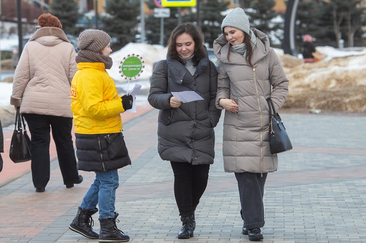 Акция под названием «Прививка = Защита» прошла 2 марта на бульваре Юности в Подольске. Это информационно-просветительское мероприятие было организовано Комитетом по делам молодежи администрации Городского округа Подольск совместно с городским волонтерским центром. Молодые люди раздавали прохожим информационные листовки с адресами и временем работы мобильных пунктов вакцинации от COVID-19.