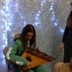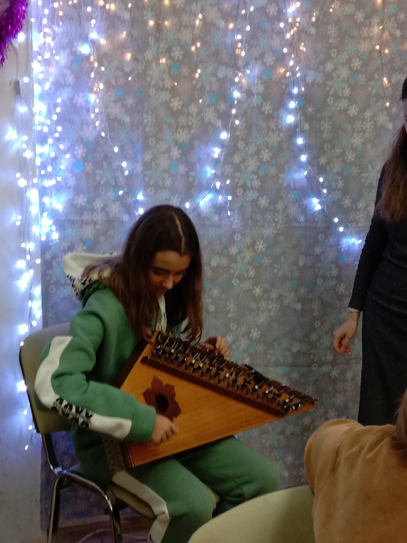 На первой встрече удивительный мир этномузыки открыла Марина Сергеевна Щербакова- музыкант и педагог. Ребята услышали удивительную игру на гуслях звончатых- серебрянный голос предков. И сами попробовали извлечь из инструмента волшебные звуки.