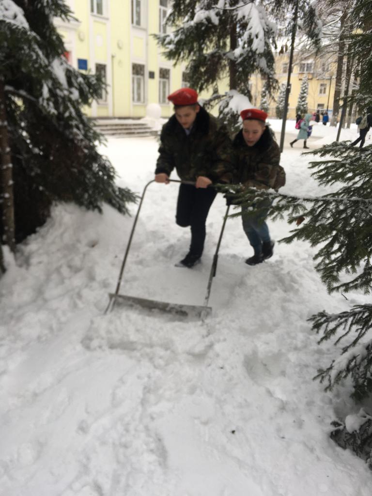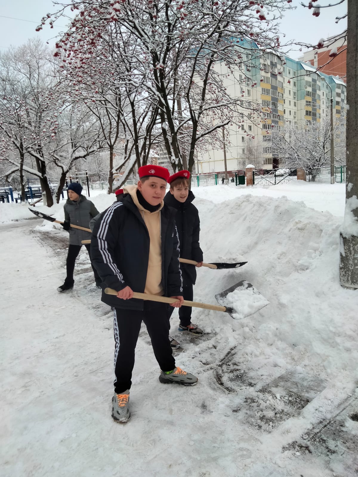 После обильных снегопадов в начале декабря 2021 года юнармейцы Городского округа Подольск оказали посильную помощь работникам ЖКХ родного муниципалитета. В свободное от учёбы время, юные патриоты очистили дворовые территории от снега. При выборе территорий, приоритет был отдан объектам отдыха детей, а также пешеходным тротуарам.
