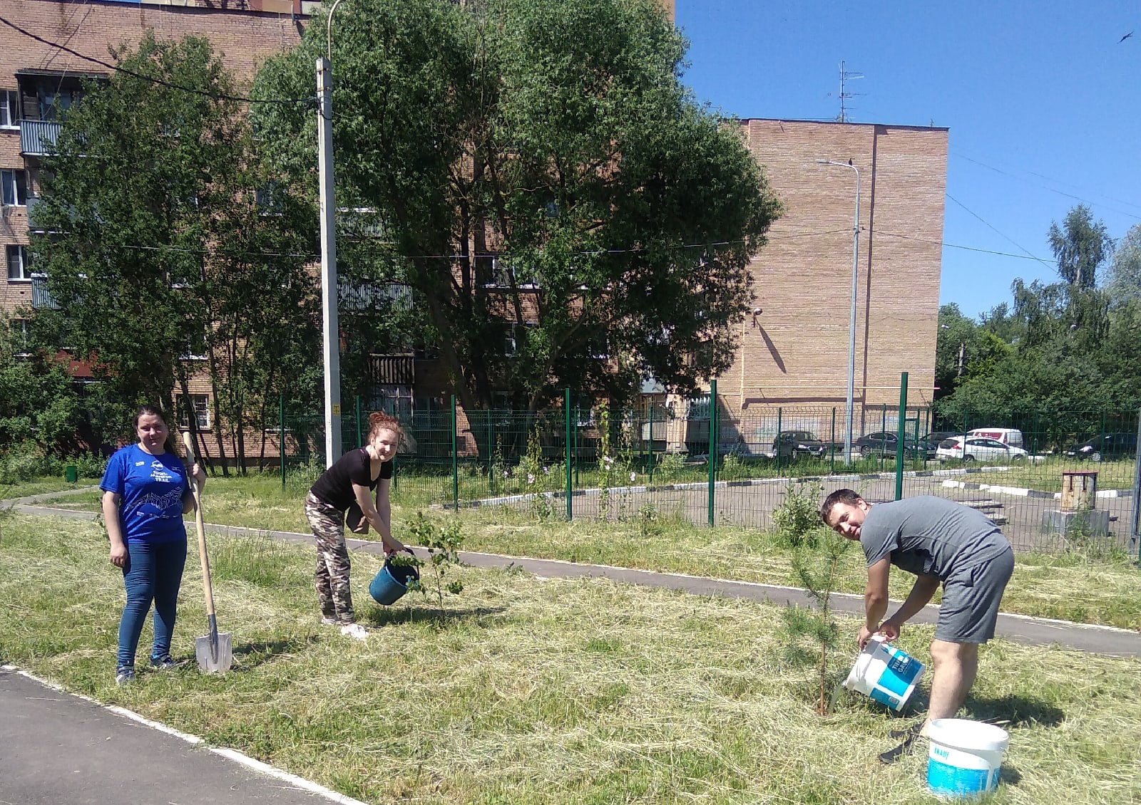 19 июня по инициативе жителей ЖК Эстет по адресу Серпуховская д.7 прошел субботник по высадке саженцев. Супруги Алексей и Вика из 6 подъезда привезли с дачи сосенки и берёзки, и с организатором субботника Кирой с раннего утра приступили к делу. Позже присоединились и другие участники.