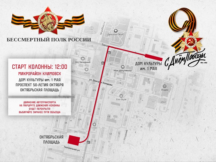 - Климовск, 12:00, от ДК им. 1 Мая к Октябрьской площади;