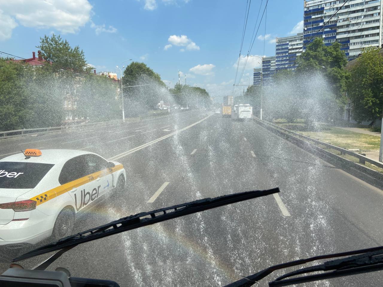 В жаркую погоду такие работы позволяют не только содержать дороги в чистоте, но и охлаждать поверхность дорожного полотна.