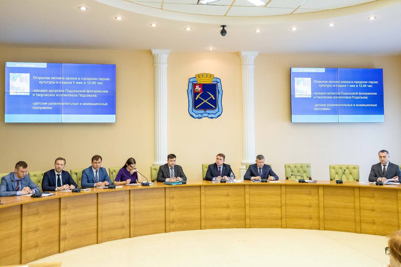 Прежде всего, ознакомились с программой к традиционным майским праздникам. Уже с 1 мая стартует летний сезон в парках Большого Подольска. Совсем скоро знаковый для нас всех День Победы. И жителей в эти дни ждёт большое количество памятных и развлекательных мероприятий.