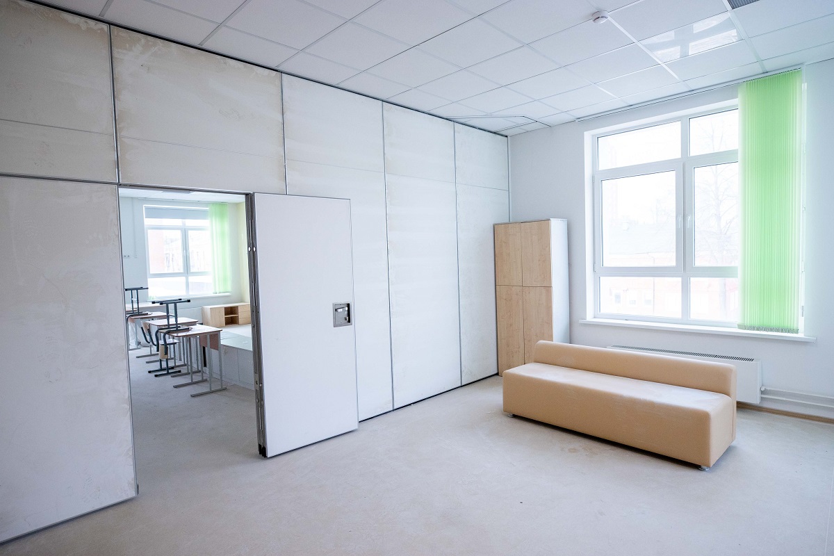«В новом трёхэтажном учебном корпусе будут обучаться порядка 300 детей начальных классов. На объекте завершены внутренние отделочные работы, специалисты приступили к выполнению пуско-наладочных работ по слаботочным системам. В кабинетах идет сборка и расстановка мебели, монтаж оборудования.