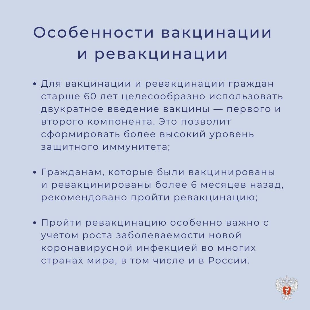 Вакцинацию и ревакцинацию граждан старше 60 лет рекомендовано проводить двукратным введением вакцины для формирования высокого уровня защитного иммунитета;