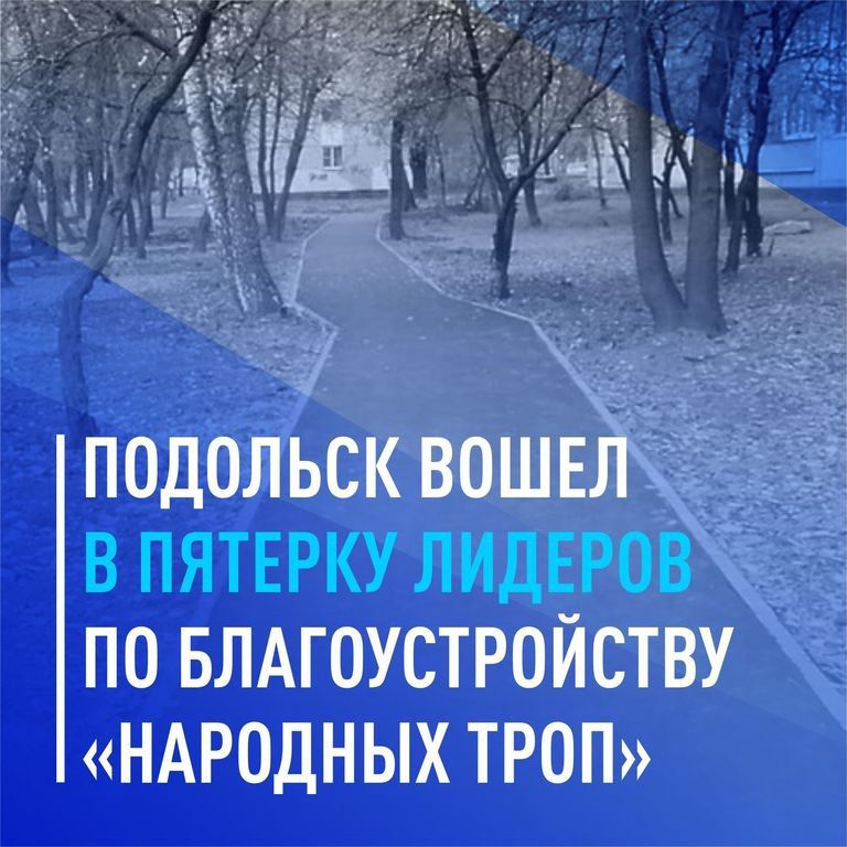 Городской округ Подольск вошёл в пятерку лидеров по благоустройству «народных троп». В этом году в муниципалитете появится почти 600 метров пешеходных дорожек.