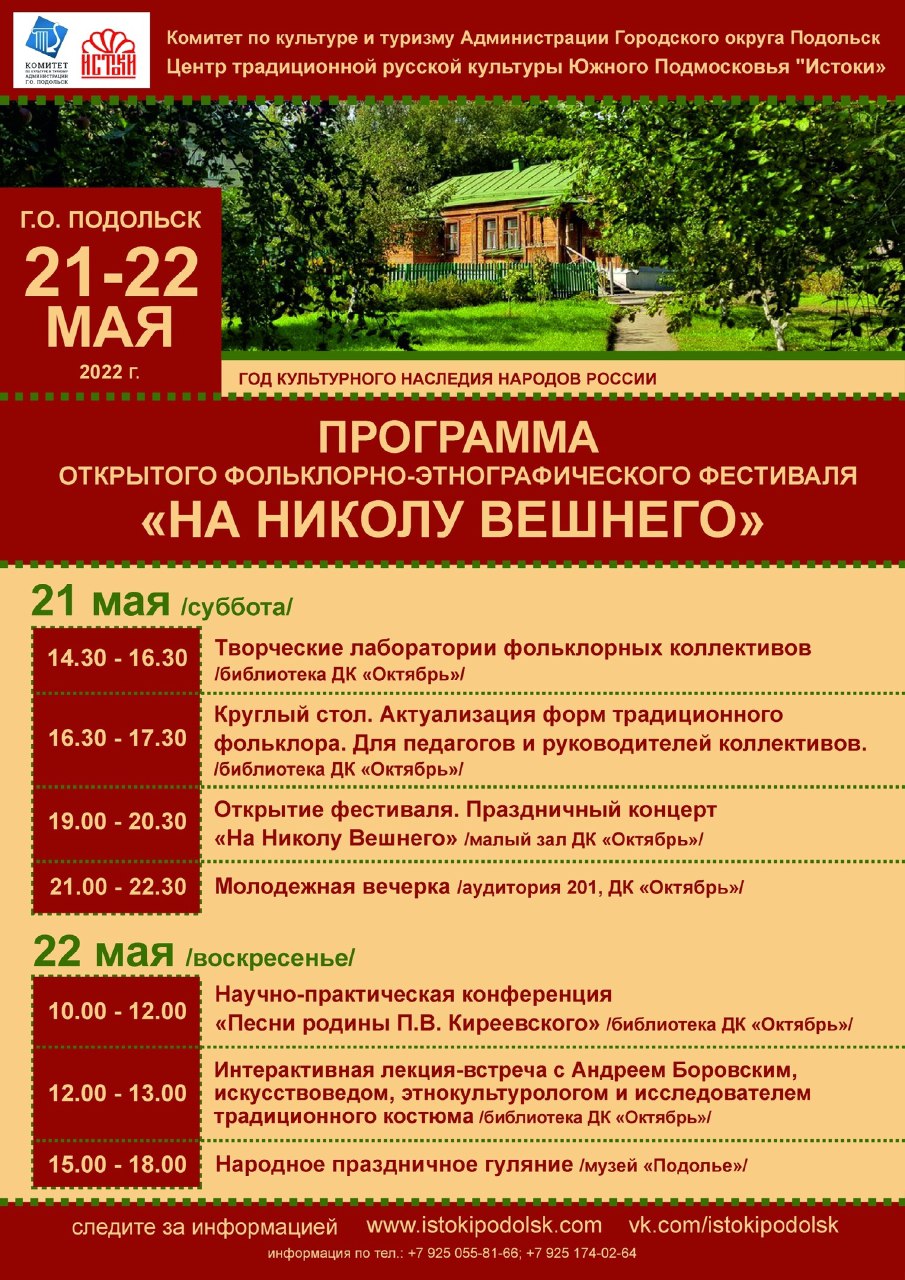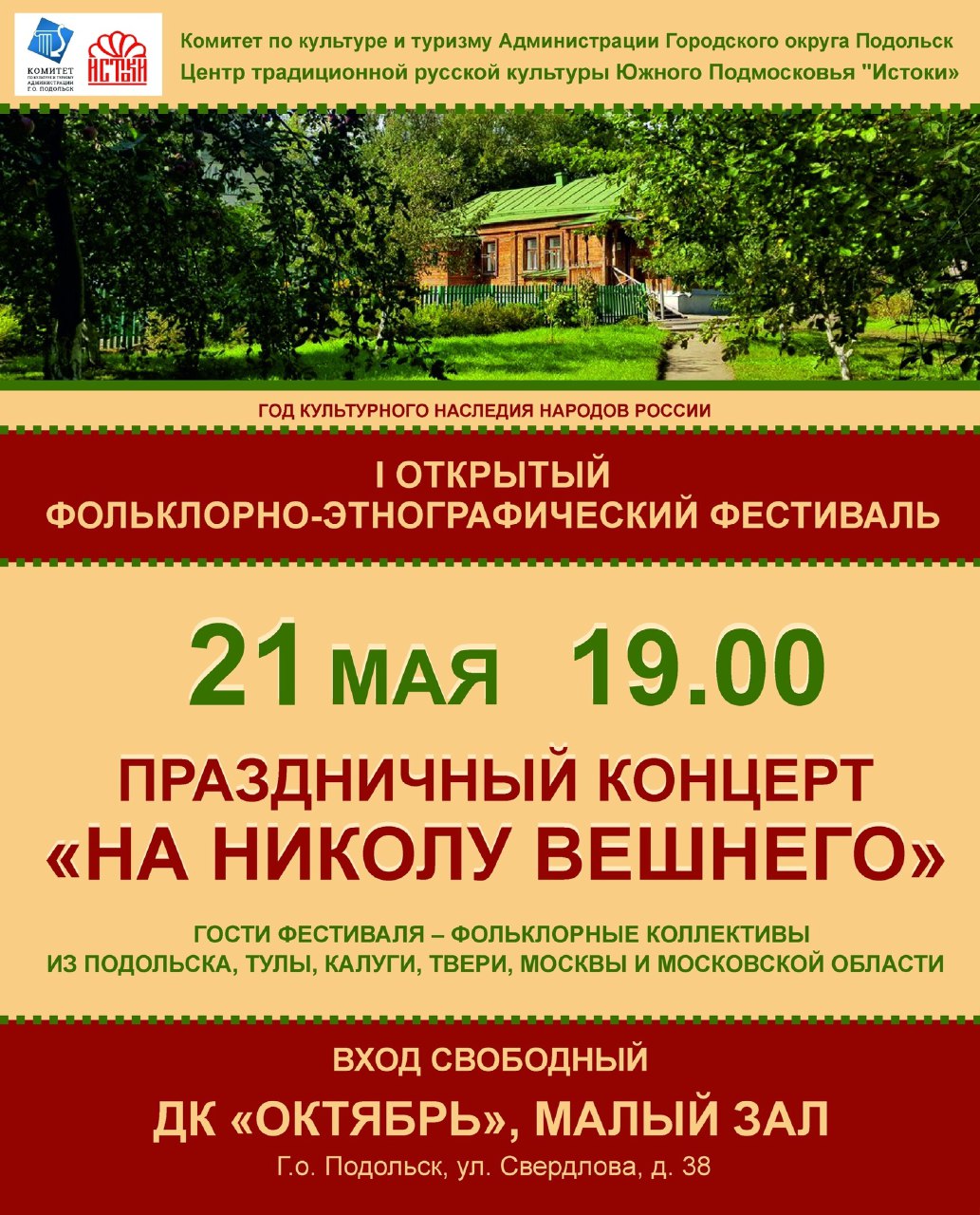 I Открытый фольклорный фестиваль «На Николу Вешнего» состоится в Подольске 21-22 мая.