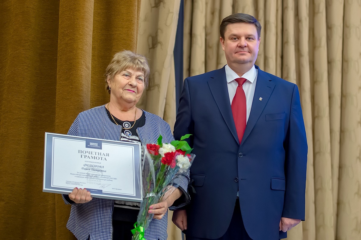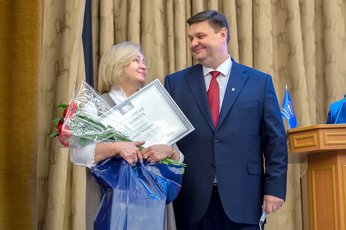 «По традиции в начале конференции вручили партийные билеты недавно вступившим в партию и вручили награды за многолетнюю плодотворную работу нашим старших товарищам.