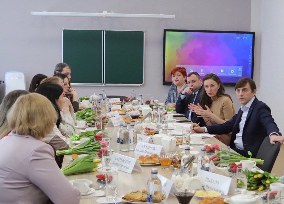 Сегодня, на базе школы № 34 городского округа Подольск состоялась встреча министра просвещения РФ Сергея Кравцова с матерями из Донецкой и Луганской народных республик, дети которых начали обучение в российских образовательных учреждениях. Вместе с родителями во встрече участвовали вице-губернатор Московской области Ирина Каклюгина, министр образования Московской области Илья Бронштейн, исполняющий обязанности главы г.о. Подольск Дмитрий Жариков, руководитель исполкома ОНФ Михаил Кузнецов, директор 34-й школы, депутат окружного Совета Инна Горкавая.