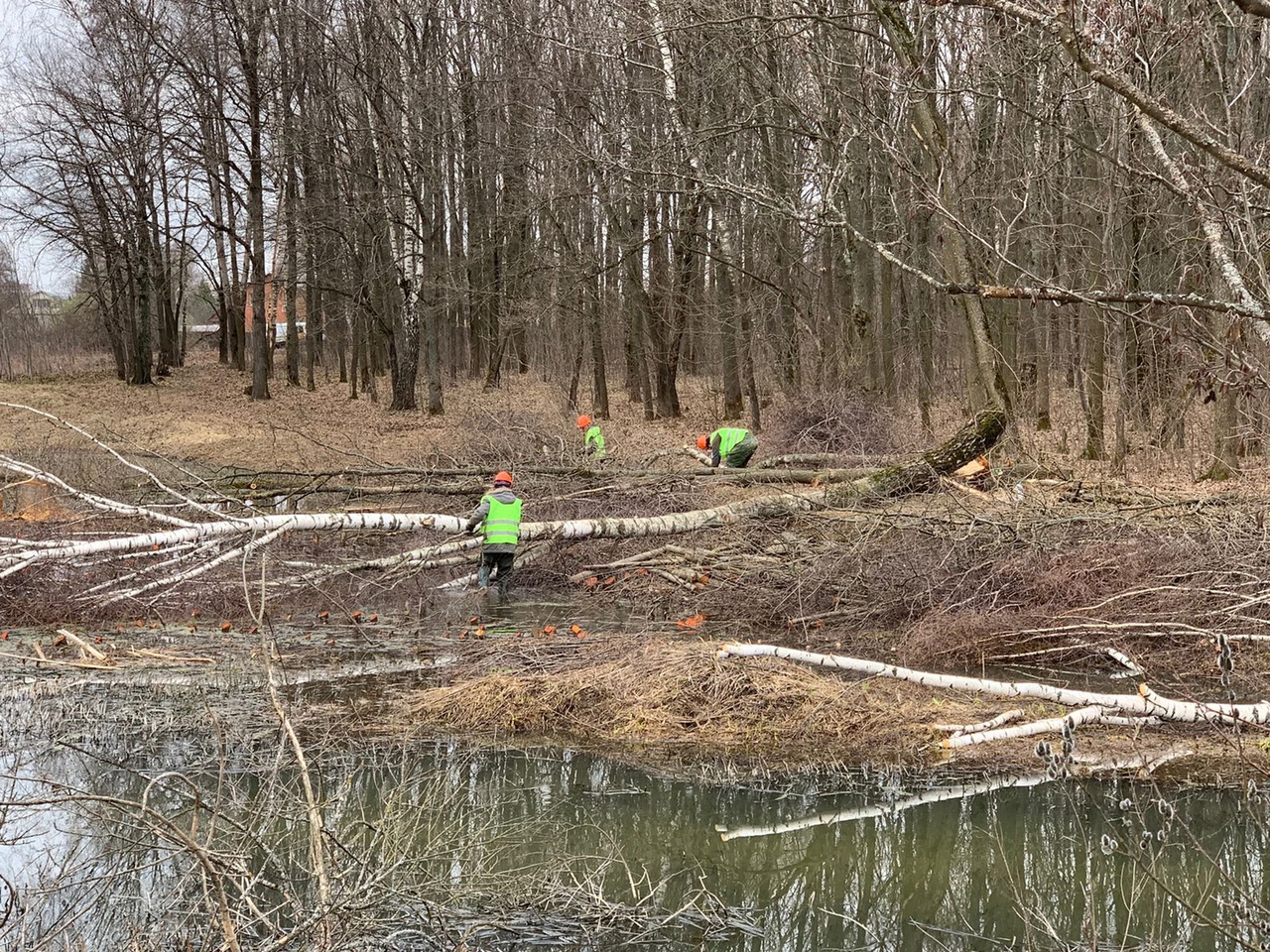 Бригада в составе 12 человек проводит расчистку берегов от древесно-кустарниковой поросли. К середине июня подрядная организация планирует приступить к работам по очистке дна акватории. В настоящее время рабочие приблизились к Фабричному проезду.