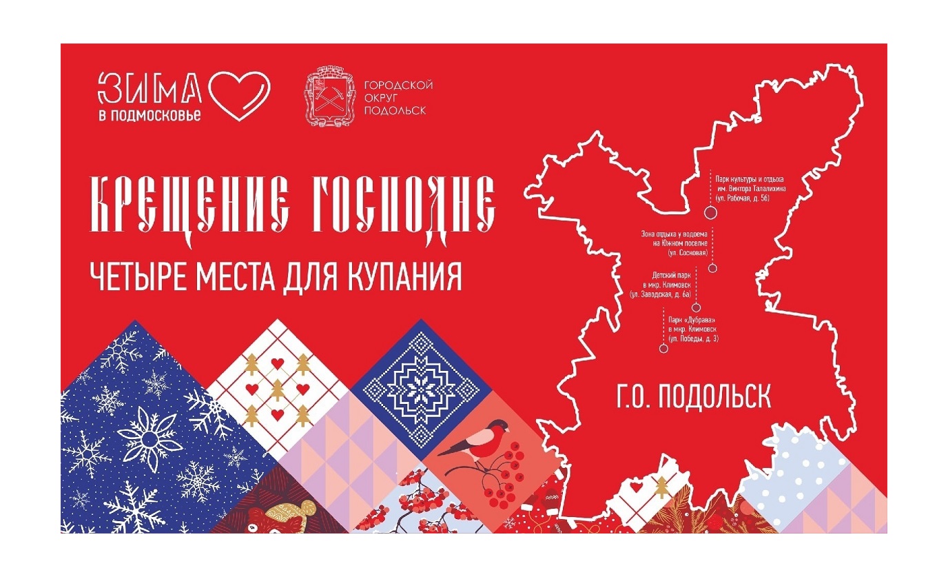 Администрация Городского округа Подольск призывает жителей округа, планирующих окунуться в крещенскую купель, сделать это в специально оборудованных местах.