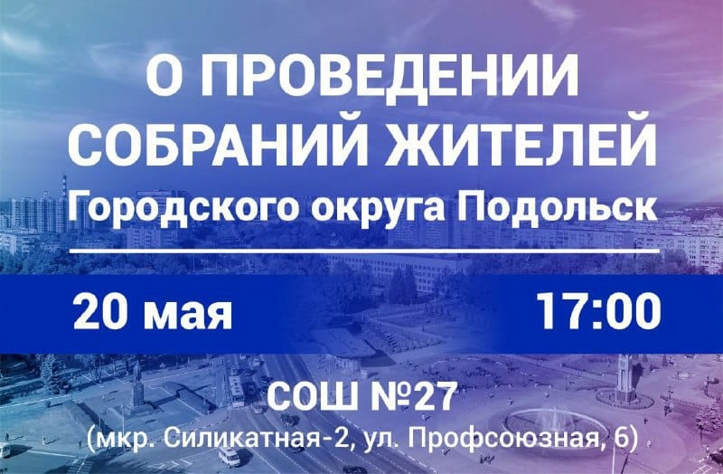Приглашаем вас принять участие в отчётном собрании, которое состоится сегодня в 17:00 по адресу: ул. Профсоюзная, д.6 (СОШ №27).