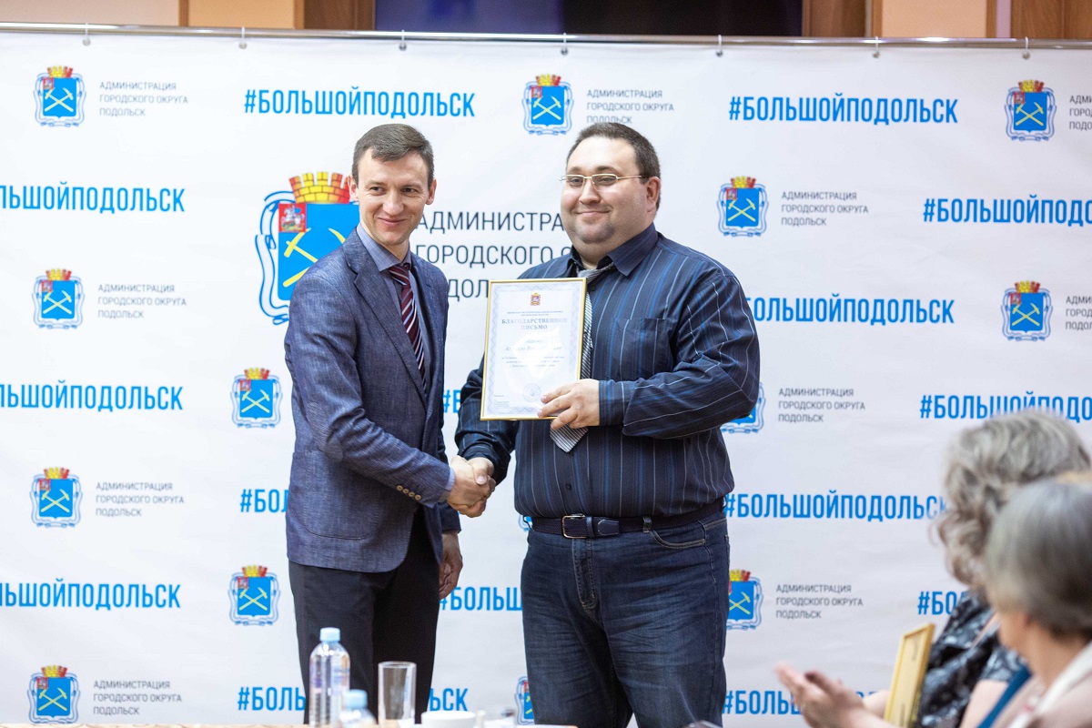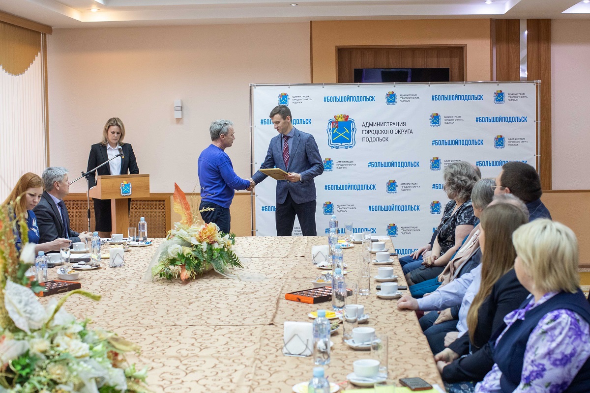На мероприятии в честь Дня местного самоуправления, который отмечается 21 апреля, были вручены областные и муниципальные награды – благодарственные письма за большой вклад в социально-экономическое развитие Московской области от министерства территориальной политики Подмосковья и благодарности главы городского округа Подольск за многолетнюю плодотворную общественную деятельность, результативную работу по обеспечению взаимодействия жителей округа с органами местного самоуправления.