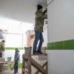 В настоящее время на объекте ведутся работы по устройству вентилированного фасада, его утеплению и облицовке плиткой. Специалистами производится монтаж внутренних инженерных сетей, прокладка кабельных линий электроснабжения и электроосвещения, вентиляционных систем, а также систем пожаротушения и дымоудаления. В полном объеме выполнены работы по разводке системы отопления в подвальном помещении.