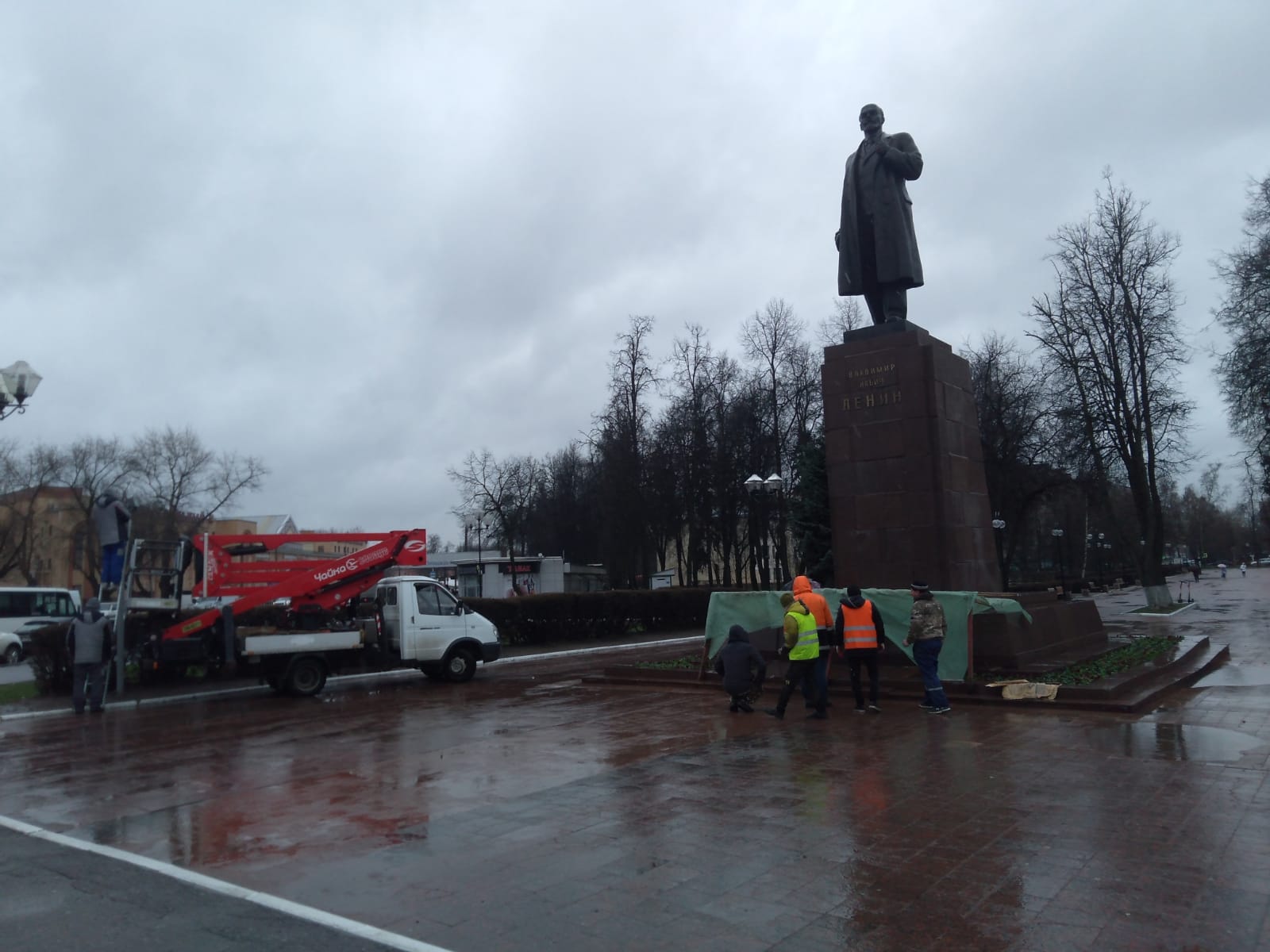 В преддверии 152-й годовщины со дня рождения В.И. Ленина, которая состоится 22 апреля, сотрудники Подольского комбината благоустройства провели обновление и затирку швов между гранитными плитами у постамента и заменили несколько мраморных плит на новые. Мастера по освещению вкрутили новые лампы на фонарные столбы для освещения монумента.