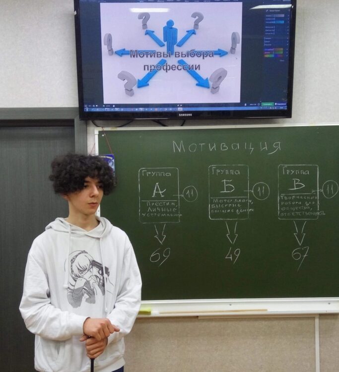 Перед встречей подростки прошли тест на тему «Выявление мотивов выбора профессии» , а после продолжили обсуждение и обмен мнениями по поиску своего будущего способа заработка денег и реализации в социуме с помощью престижной профессии.