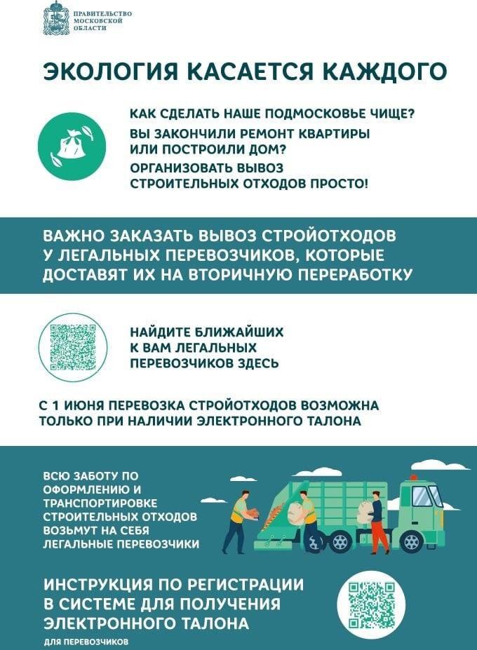 Реестр размещен на сайтах Министерства жилищно-коммунального хозяйства Московской области, а также Министерства экологии и природопользования Московской области, размещаются листовки с QR-кодами на информационных стендах подъез¬дов, коттеджных поселков и СНТ. Достаточно навести телефон на QR-код — получаете список возчиков, которые совершенно точно довезут ваши отходы строительства туда, куда надо», — говорит Андрей Разин.